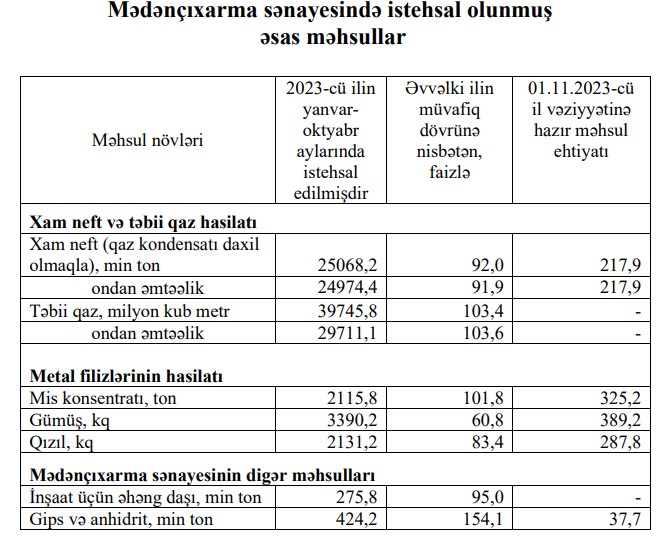 Gümüş istehsalı isə 39,2% azalaraq 3 min 390,2 kq olub.