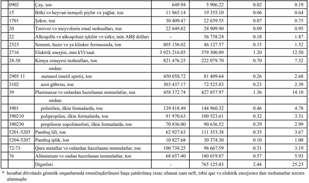 Azərbaycanın ən çox ixrac və idxal etdiyi mallar - YENİ SİYAHI