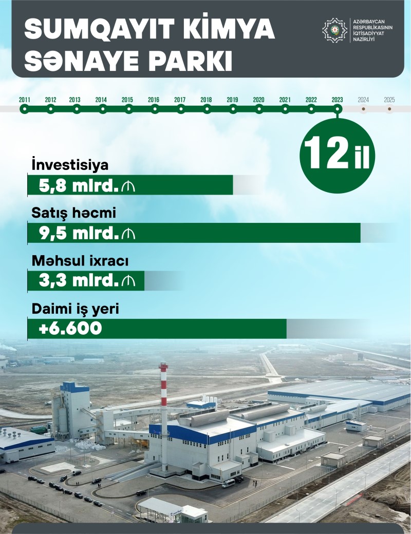 Bu gün Prezident İlham Əliyevin sərəncamı ilə təsis edilən, ölkəmizin ilk sənaye parkı olan Sumqayıt Kimya Sənaye Parkının yaradılmasından 12 il keçir.