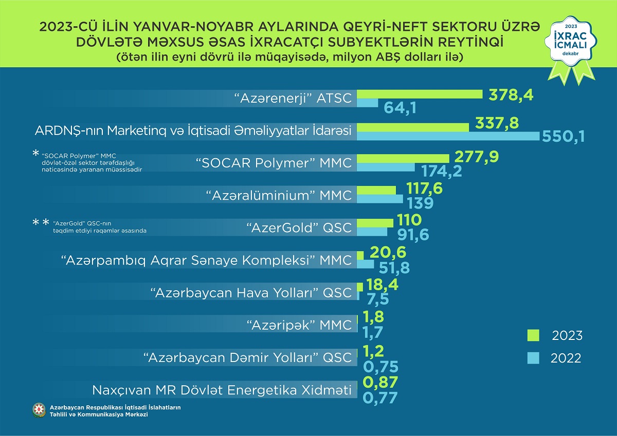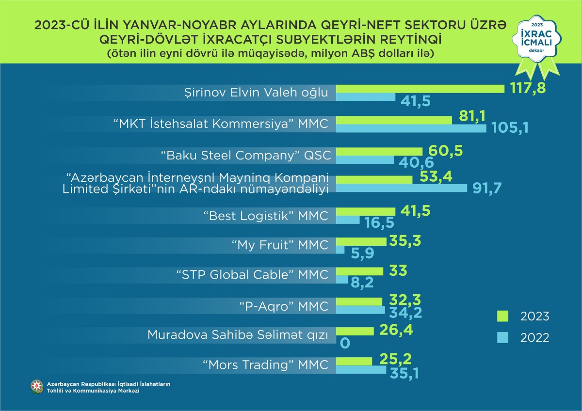 Qeyd edək ki, 2022-ci ilin yanvar-noyabr aylarında “Baku Steel Company”nin ixracının həcmi 40,6 milyon dollar təşkil etmişdi.
