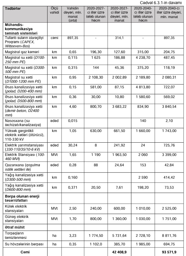 Bakı şəhərinin 2040-cı ilədək inkişafına dair Baş Planının icrasına ümumilikdə 93,6 milyard manat vəsaitin yönəldilməsi nəzərdə tutulur.