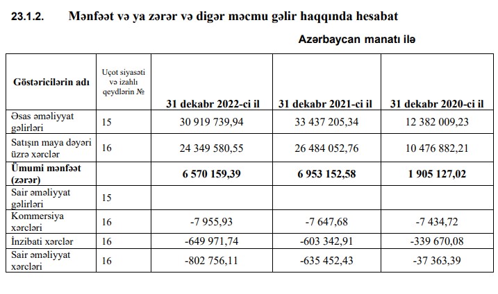 Sement məhsulları satan şirkət milyonlar qazandığını açıqladı