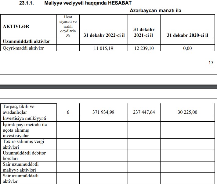 "Konstromat” ASC-nin cəmi uzunmüddətli aktivləri 2022-ci ilinin sonuna 382 min 950 manat, qısamüddətli aktivlər isə 5 milyon 792 min 361 manat təşkil edib. Həmçinin Şirkətin öhdəlikləri 2022-ci ilin sonuna 2 milyon 210 min 587 manata çatmışdır.