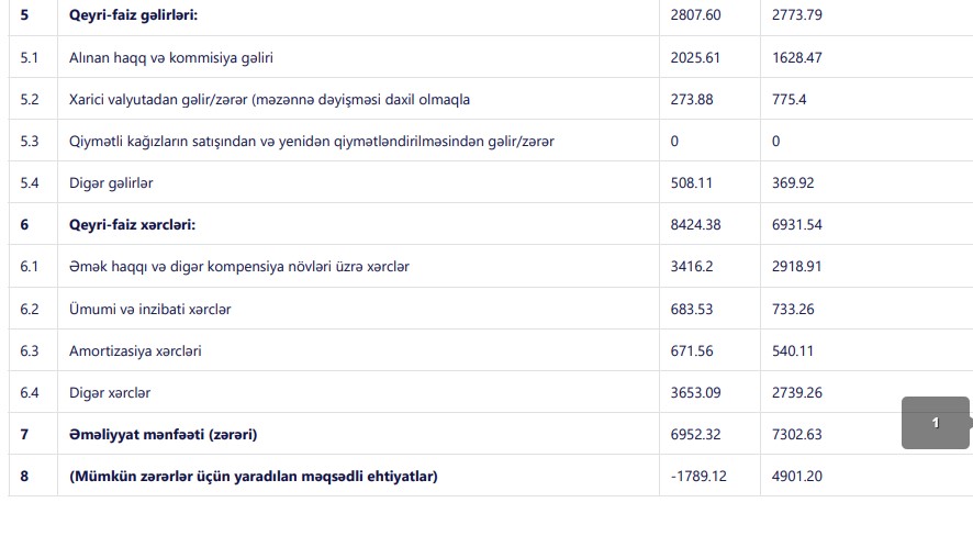 Müqayisə üçün qeyd edək ki, 2022-ci ildə cəmi əməliyyat gəlirləri 15 milyon 525 min manat, cəmi əməliyyat xərcləri 8 milyon 223 min manat, əməliyyat mənfəəti 7 milyon 302 min manat təşkil etmişdi. Bank mümkün zərərlər üçün yaradılan məqsədli ehtiyatlara 4 milyon 901 min manat ayırdığından və 586 min manat mənfəət vergisi ödiyindən 2022-ci ili 1 milyon 815 min manat xalis mənfəətlə bağlamışdı.