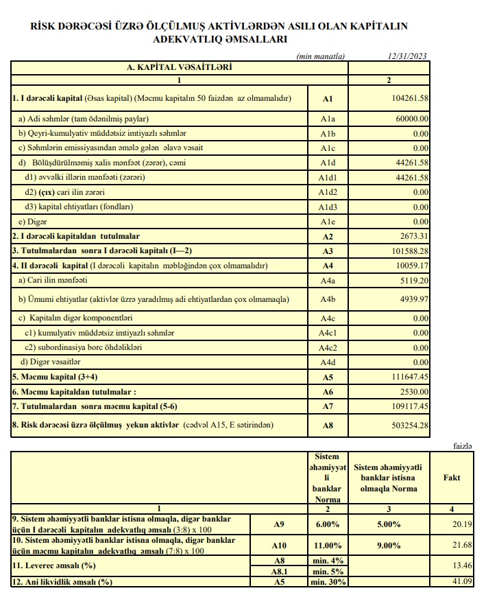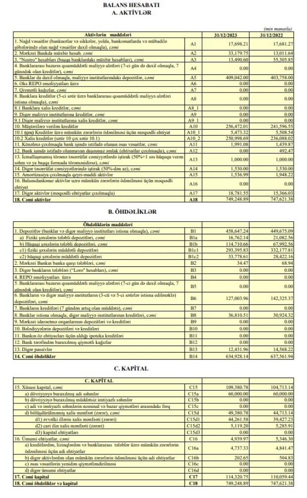 Ötən il ASB-nin cəmi aktivləri 1 milyon 627 min manat və ya 0,2% artaraq 31 dekabr 2023-cü il tarixində 749 milyon 248 min manata çatıb.