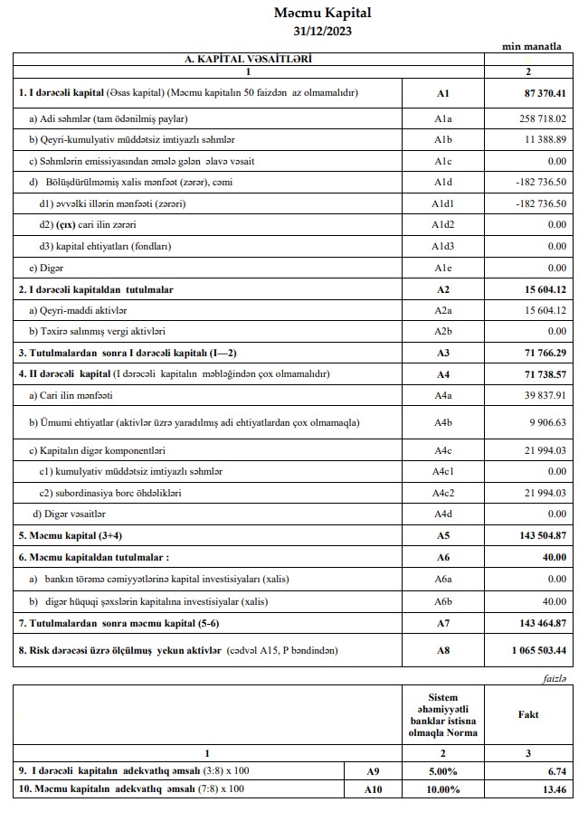 AccessBank-ın yaydığı press-relizdə bildirilir ki, Bank, 2023-cü il nəticələrinə görə 39.8 milyon manat xalis mənfəət əldə edib. Eyni göstərici 2022-ci ildə 15.0 milyon manat təşkil edib. Nəticədə, Bankın kapital dayanıqlığı göstəricisi daha da möhkəmlənmiş və məcmu kapitalı 41.9% və ya 42.3 milyon manat artaraq 143.5 milyon manata yüksəlmişdir ki, bu da requlyativ tələbdən 2.9 dəfə çoxdur.