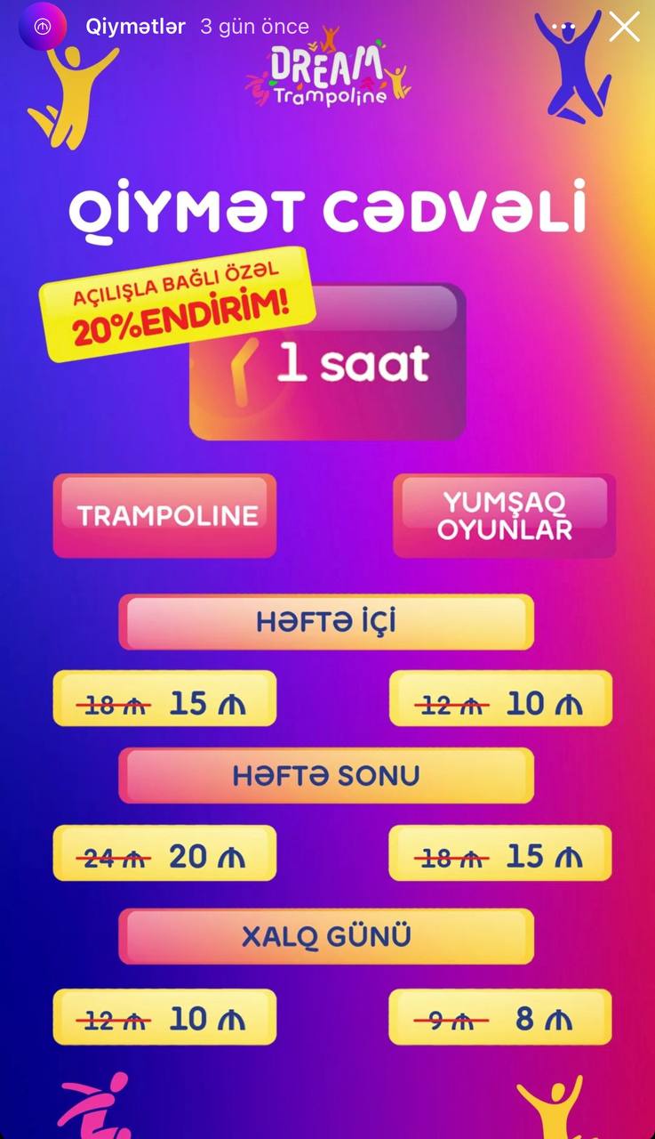 “Dream Trampoline” əyləncə mərkəzinin açılışa özəl qiymətləri: