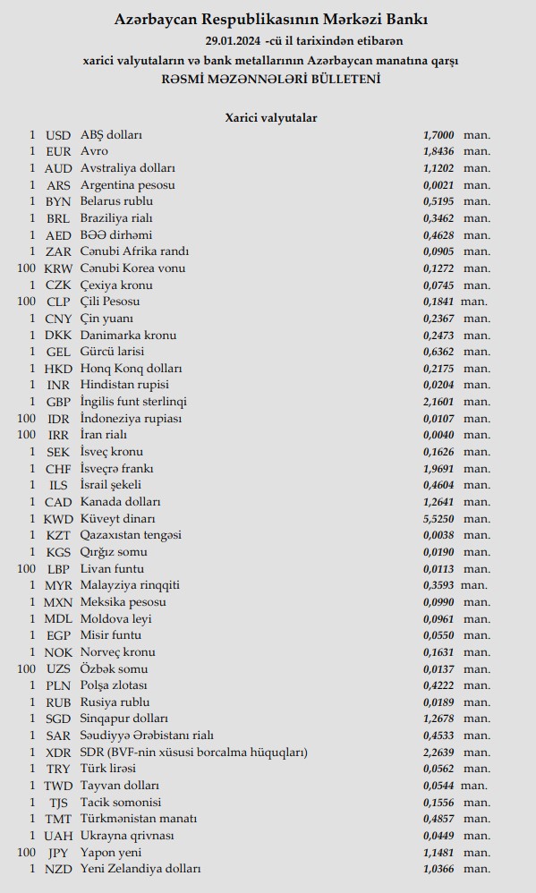 Mərkəzi Bankdan 2026-cı ildə Dollar/Manat məzənnəsi barədə açıqlama