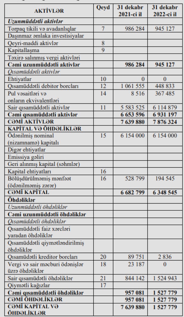"BQ Aqro" şirkəti zərər edib