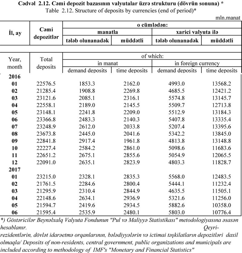 “Marja” xəbər verir ki, 2017-ci il İyulun 1-nə banklardakı 21 milyard 595.4 milyon manat depozitin 16 milyard 579,4 milyon manatı xarici valyutadadır. Bu məbləğ bugünkü məzənnə ilə təxminən 9 milyard 750 milyon dollardır.