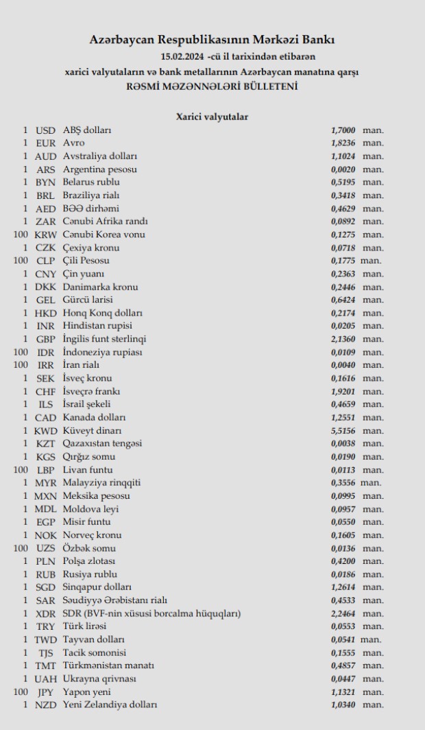 Dolların sabah üçün rəsmi məzənnəsi müəyyən olunub