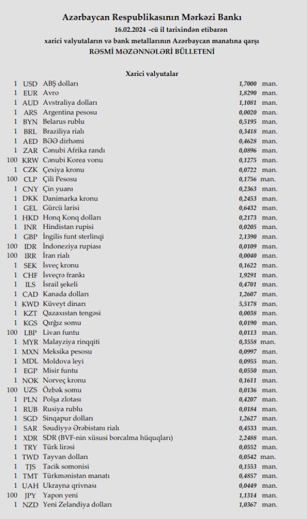 Dolların sabah üçün rəsmi məzənnəsi müəyyən olunub