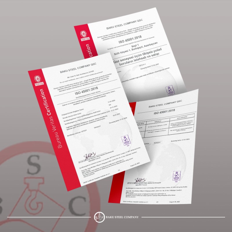 Belə ki, dünyaca məşhur “Bureau Veritas Certification SAS” şirkətinin Böyük Britaniya filialı BSC-nin əsas məhsullarının istehsalı və satışı üzrə idarəetmə standartlarının tələblərinə tam uyğun olduğunu təsdiq edərək, şirkətə müvafiq ISO 45001:2018 sertifikatı verib.