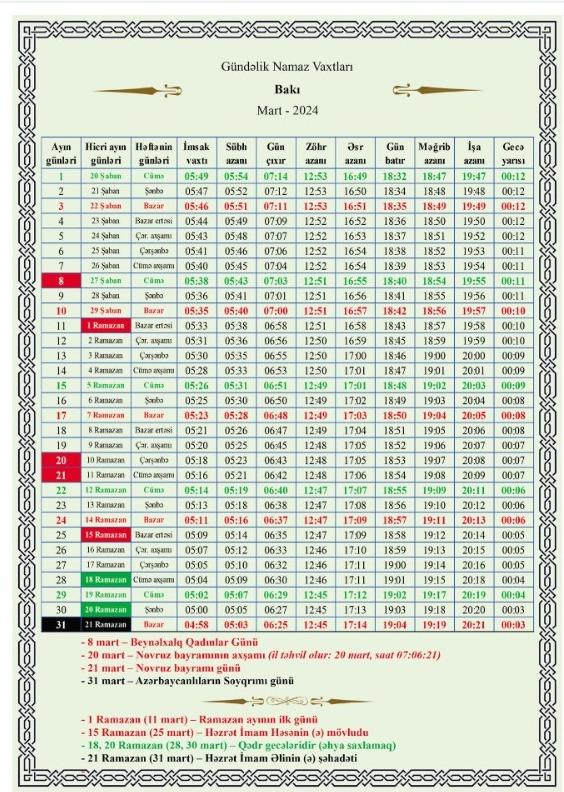 Azərbaycanda Ramazan ayı martın 11-də başlayacaq.