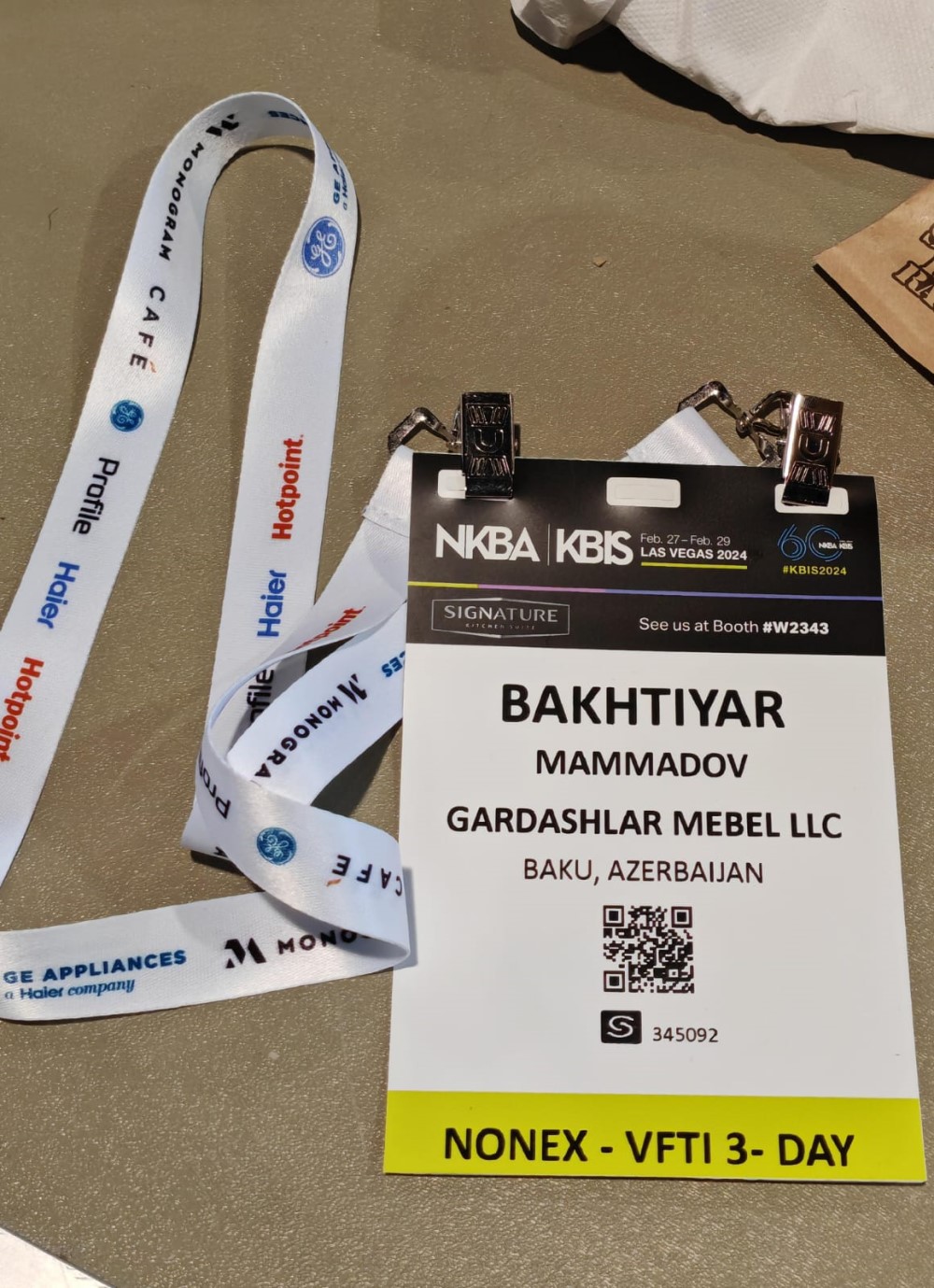 (®) “Qardaşlar Mebel” QSC-nin rəhbərliyindən ibarət nümayəndə heyəti, Əli Mirzəyev, Hüseyn Mirzəyev, həmçinin şirkətin Amerika Birləşmiş Ştatlarındakı nümayəndəsi Bəxtiyar Məmmədov, dünyanın ən tanınmış Mətbəx və Hamam Assosiyasının dəvəti ilə cari ilin 26-28 fevral tarixlərində ABŞ-nin Las Veqas şəhərində Mətbəx və Hamam Sənayesi Sərgisində (KBİS) iştirak ediblər.