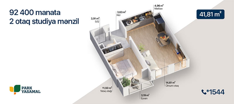 “Kristal Abşeron”un mənzil sahibi olmaq istəyənlər üçün fürsətləri davam edir. Sadəcə 92.400 manat ödəməklə “Park Yasamal”da tam təmirli, 2 otaq studiya mənzil sahibi ola bilərsiniz. Yaşayış kompleksində hər kəsin zövqünə uyğun mənzillər mövcuddur.