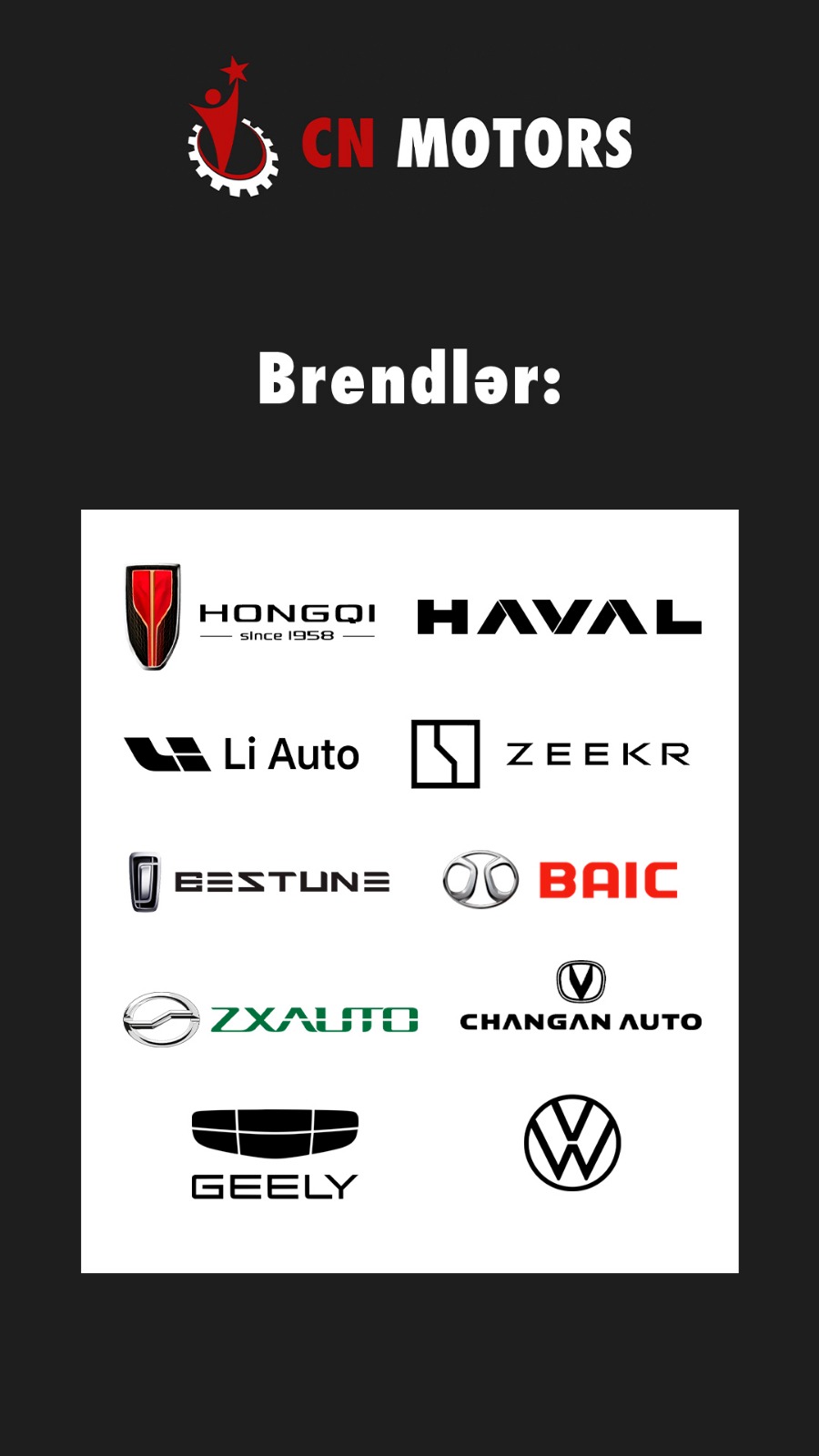 "CN Motors" adlanan mərkəzdə Çin istehsalı elektrik, hibrid və daxili yanma mühərrikli avtomobillər üçün bütün ehtiyat hissələrini almaq mümkün olacaq.