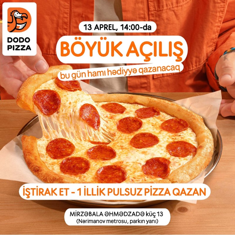 BÖYÜK AÇILIŞ: DODO PİZZA BAKIDAŞənbə günü, aprelin 13-də, Dodo Pizzanın ilk restoranının rəsmi açılışı keçiriləcək.