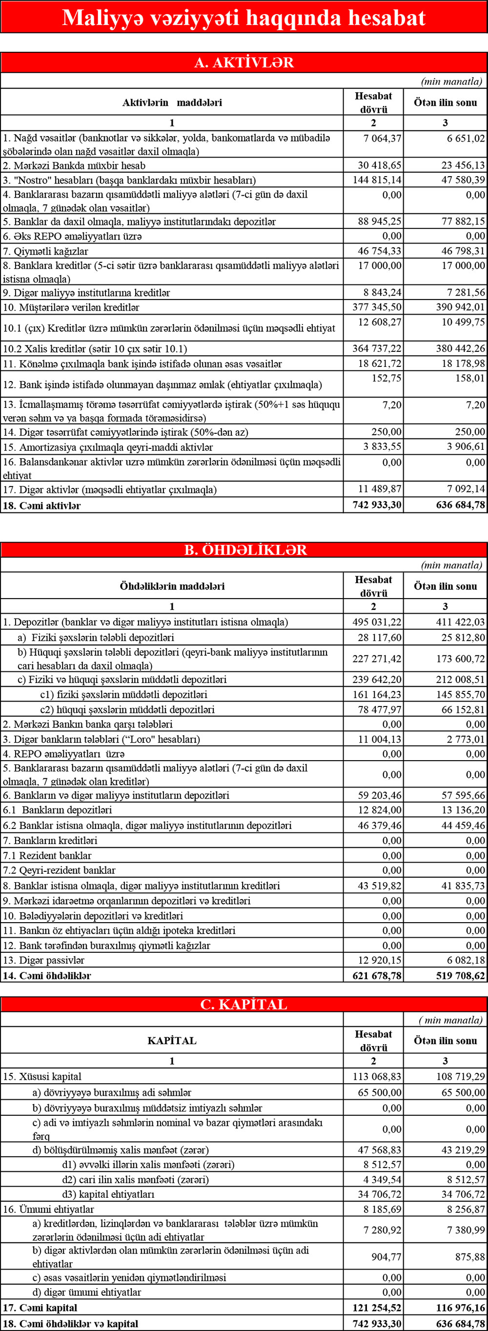 Bu barədə Marja.az Bankın maliyyə göstəricilərinə istinadən xəbər verir.
