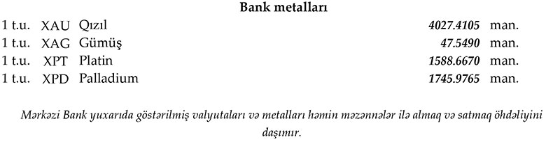 Rəsmi məzənnələr açıqlandı
