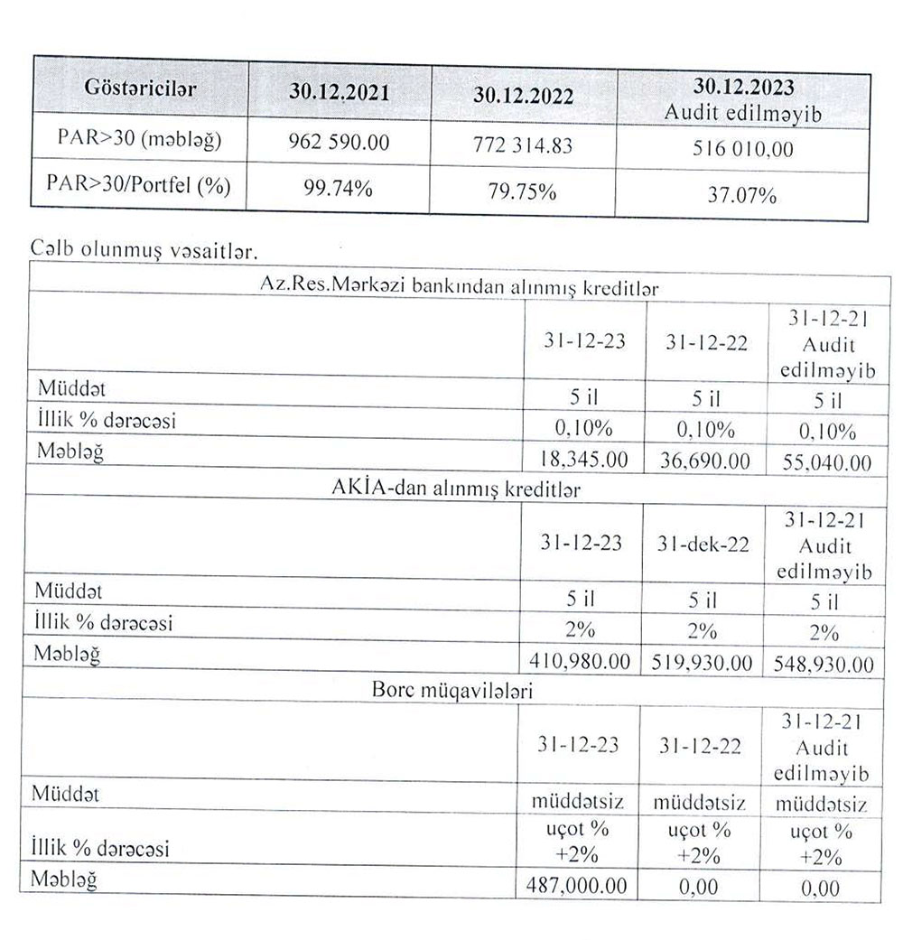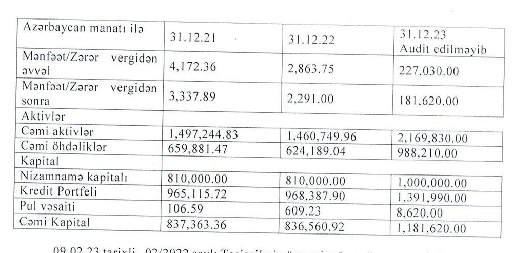 Ötən il kredit təşkilatının cəmi aktivləri 709 min 81 manat və ya 48,5% artaraq 2 milyon 169 min 830 manata yüksəlib.