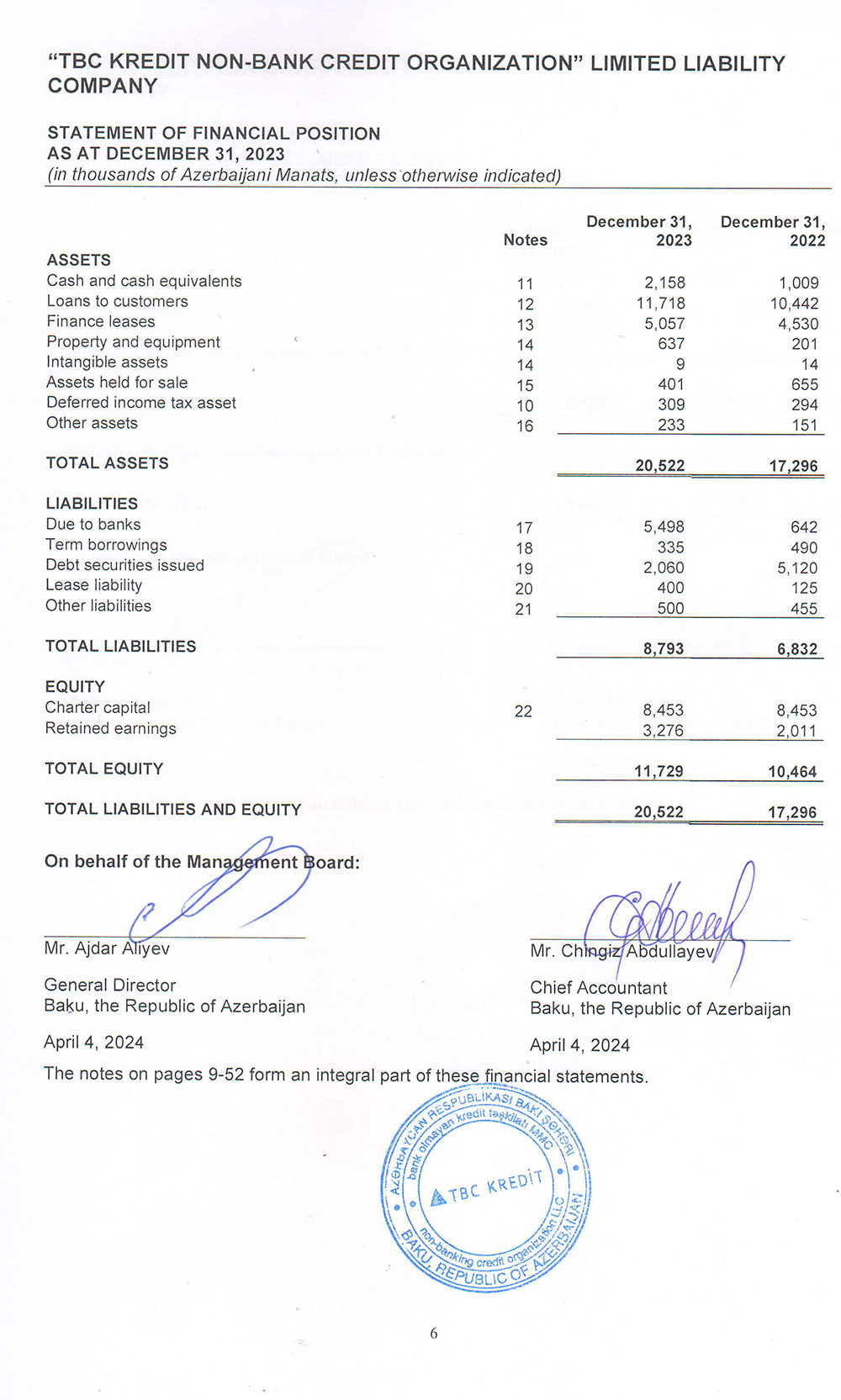 "TBC Kredit" Bank Olmayan Kredit Təşkilatı 2023-cü ili 1 milyon 265 min manat xalis mənfəət ilə başa vurub. Təşkilat 2022-ci ili 1 milyon 537 min manat xalis mənfəət ilə bağlamışdı. Beləliklə, "TBC Kredit"in xalis mənfəəti 2023-cü ildə 2022-ci illə müqayisədə 272 min manat və ya 17,7% azalıb. Xalis mənfəətin azalması xərclərin artması, əsasən də maliyyə aktivləri üzrə gözlənilən kredit itkilərinin bərpası üzrə ehtiyata ayırmanın daha böyük məbləğdə olması ilə əlaqədardır.