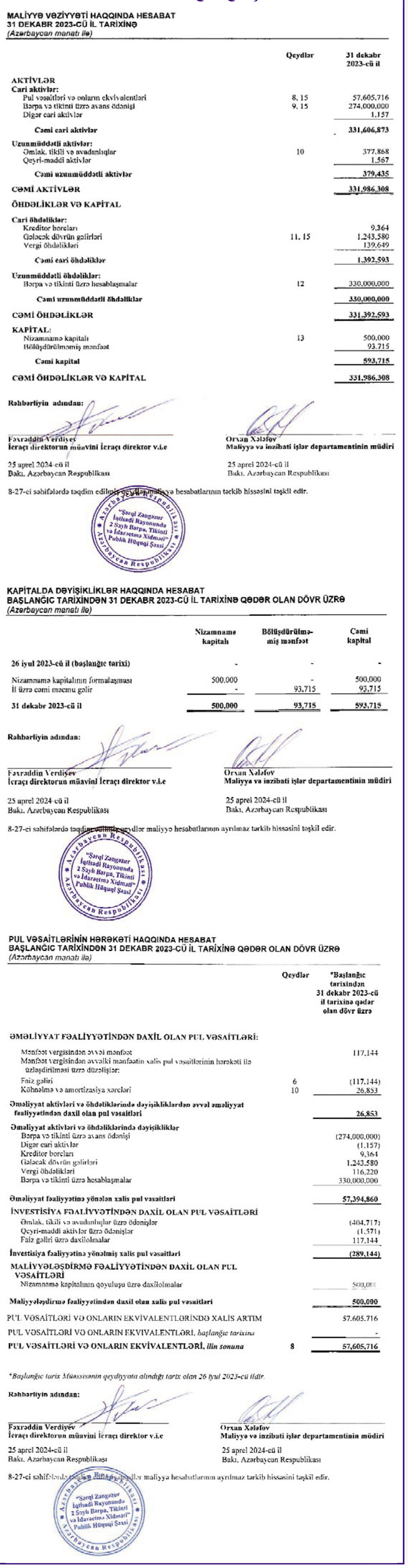 Şərqi Zəngəzur İqtisadi Rayonunda 2 saylı Bərpa, Tikinti və İdarəetmə Xidməti 2023-cü ili 93 min 715 manat xalis mənfəət ilə başa vurub.