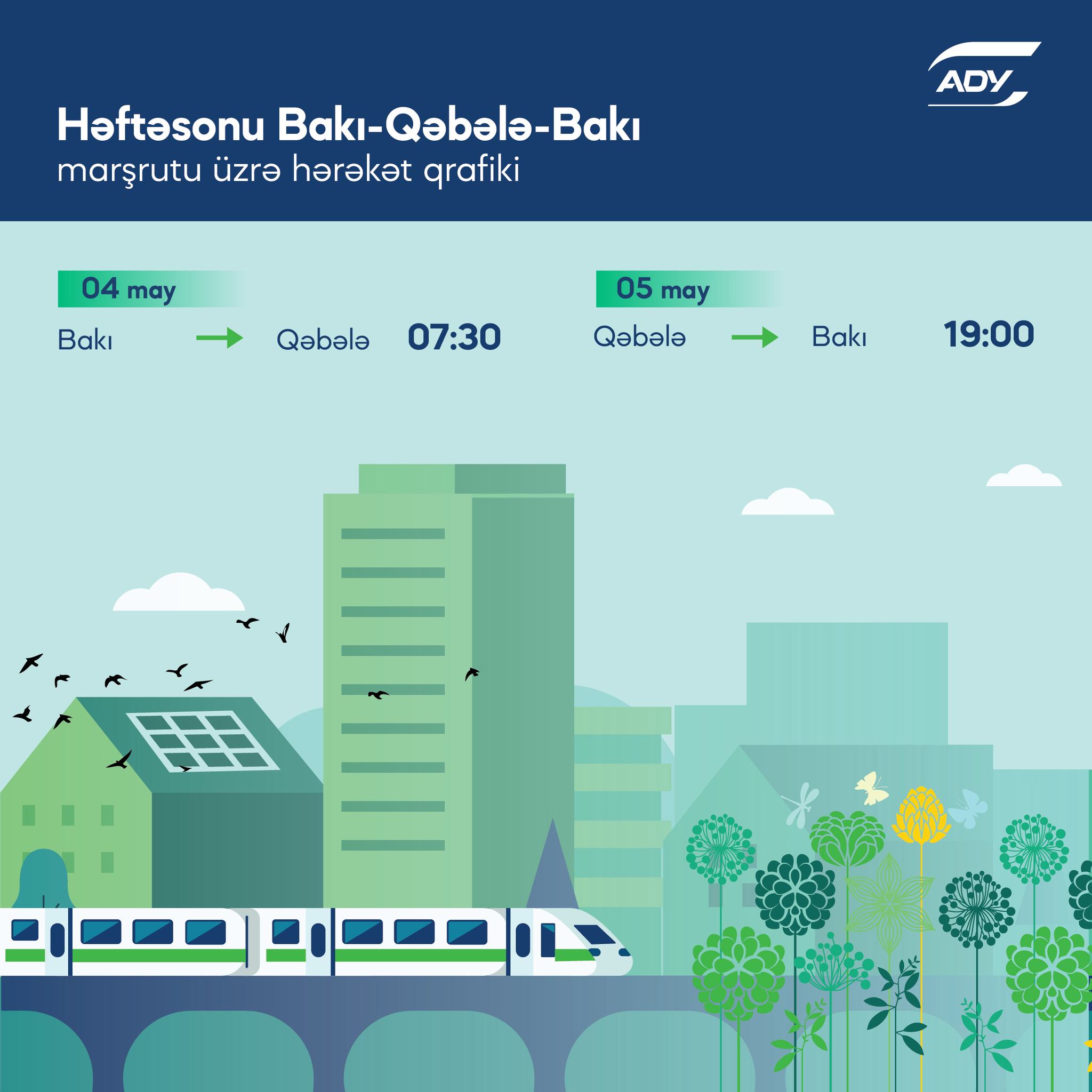 "Həmçinin Bakı-Qəbələ-Bakı marşrutu ilə hərəkət edən qatarlarımız da hər həftəsonu xidmətinizdədir.