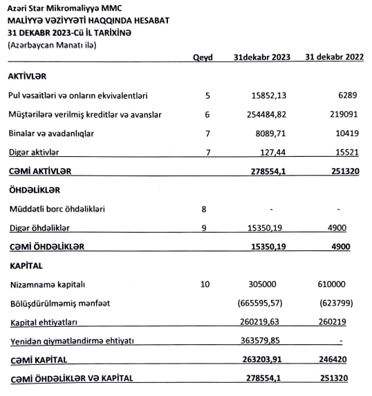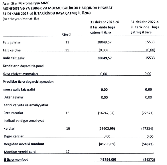 “Azəri Star Mikromaliyyə” 2023-cü ili də zərər ilə bağlayıb