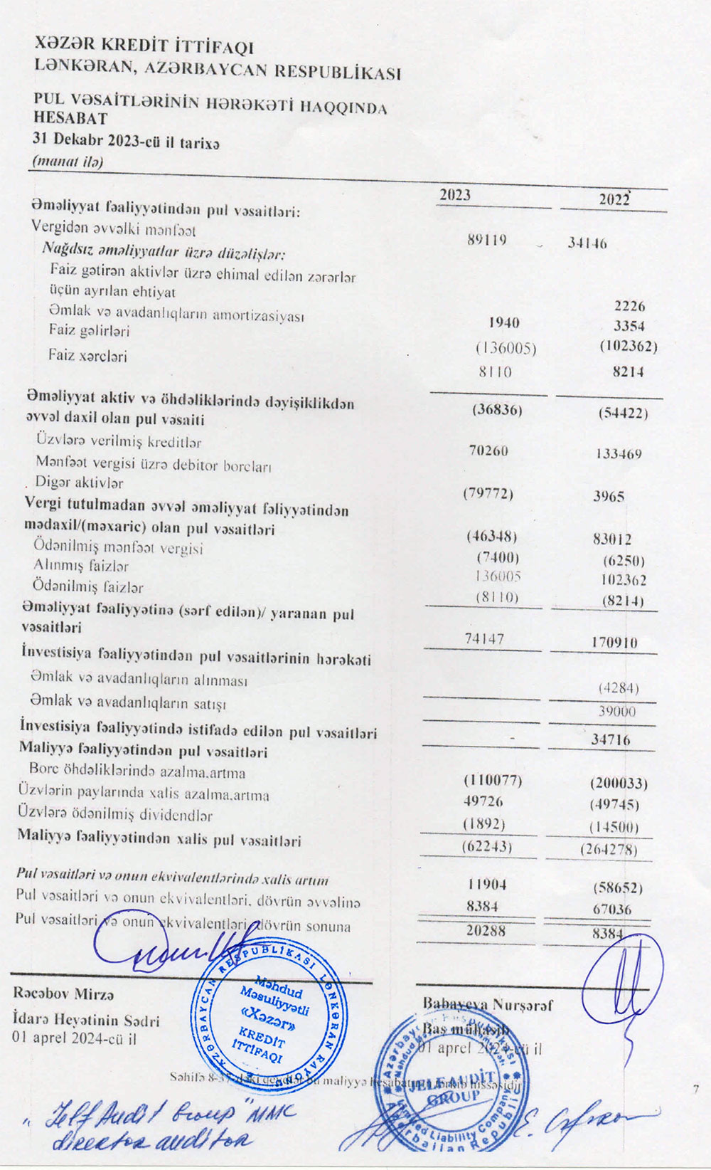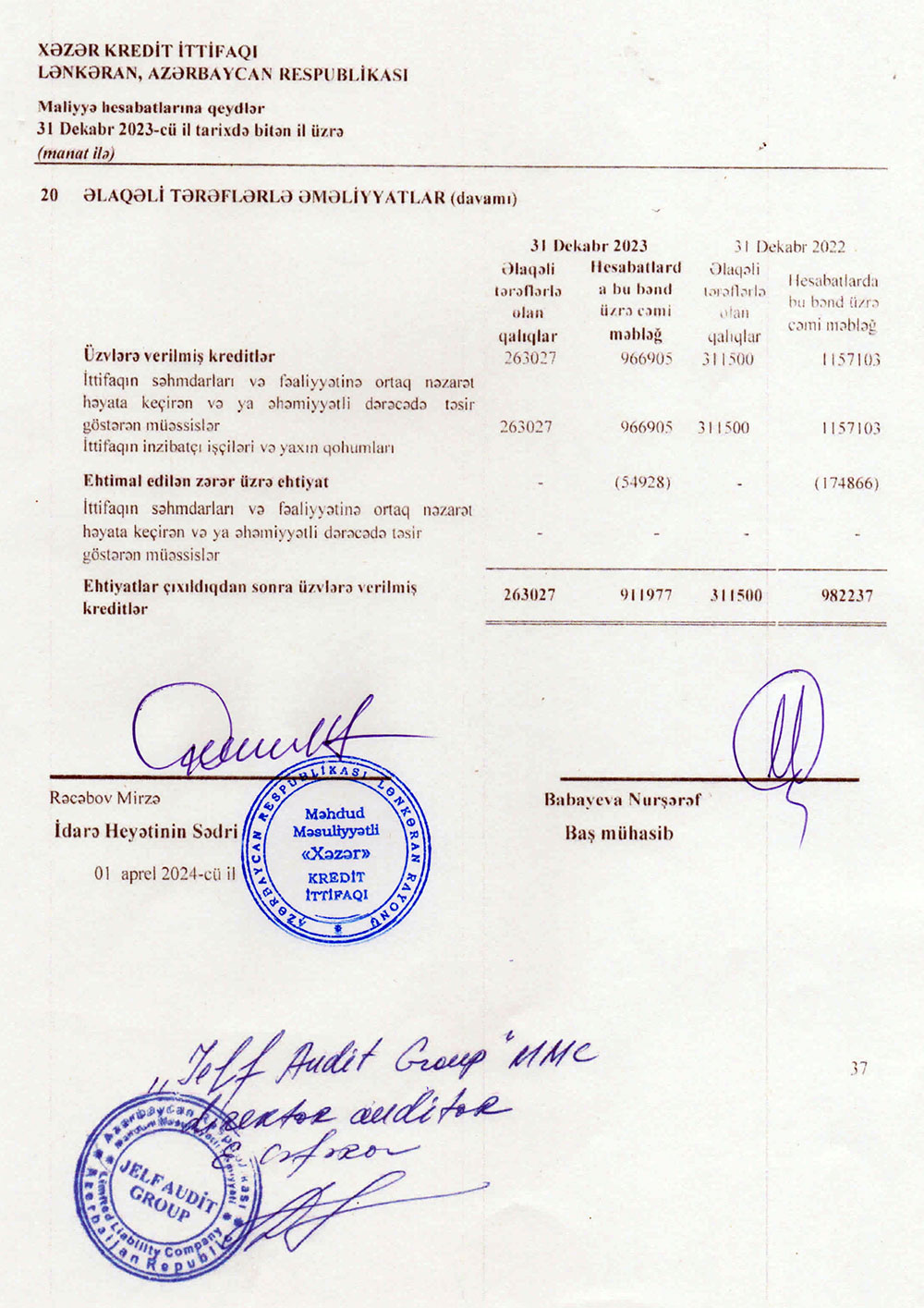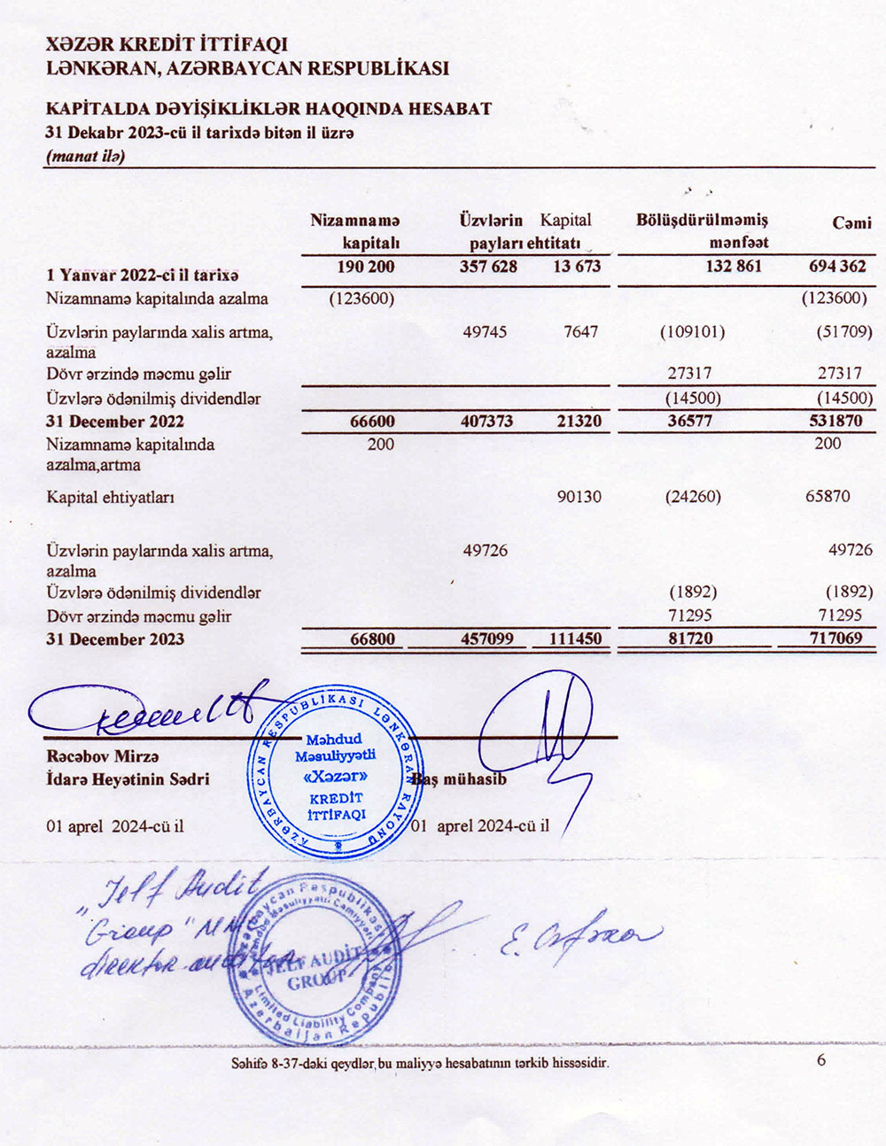 "Xəzər Kredit İttifaqı" MMC-nin 31 dekabr 2023-xü il tarixində bitən il üzrə maliyyə hesabatları.