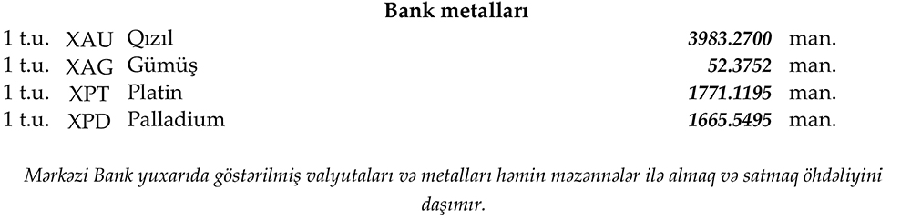 Rəsmi məzənnələr açıqlandıRəsmi məzənnələr açıqlandı