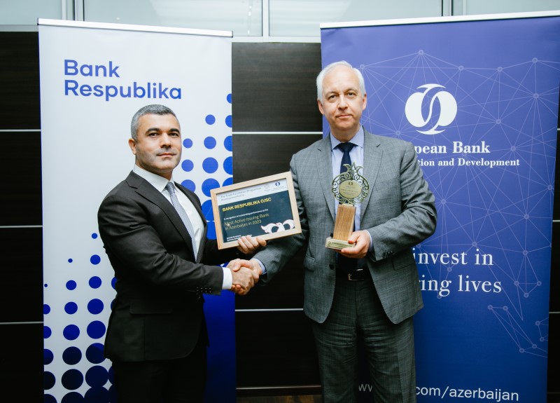 EBRD “Bank Respublika”nı növbəti dəfə “Azərbaycanın ən fəal emitent bankı” elan etdi!(®) “Bank Respublika – dinamik və dayanaqlı inkişaf edən Azərbaycanın aparıcı banklarından biri” məhz bu sözlərlə Azərbaycan bankı Avropa Yenidənqurma və İnkişaf Bankının (EBRD) Ermənistanın paytaxtı İrəvan şəhərində mükafat alarkən təqdim edilmişdir.