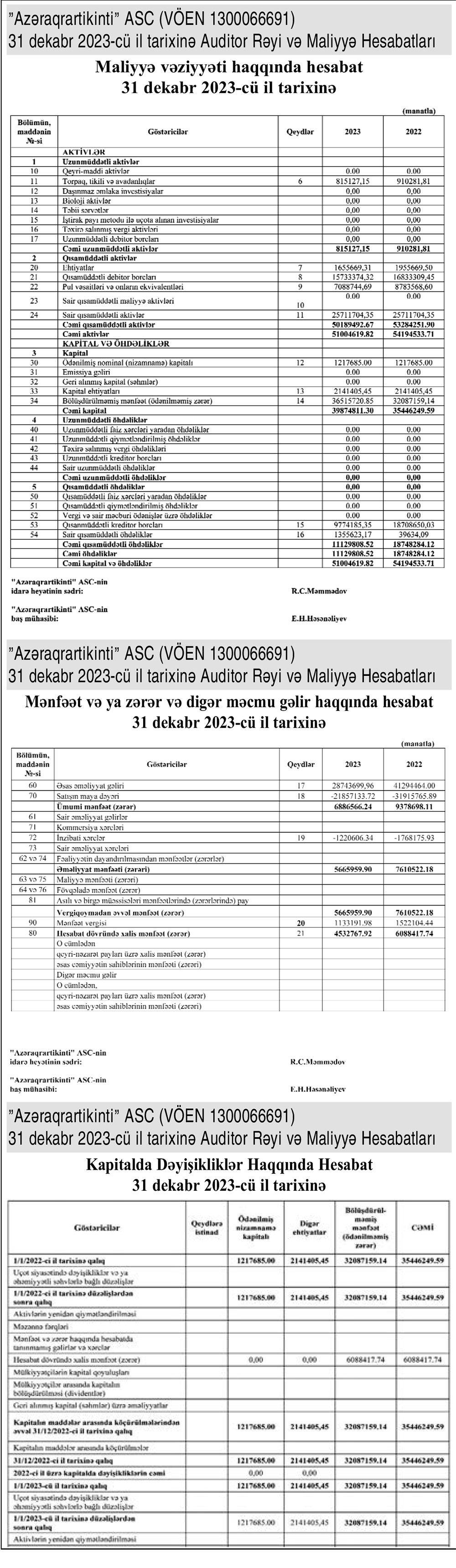 "Azəraqrartikinti"nin gəliri kəskin azalıb, xalis mənfəəti düşüb