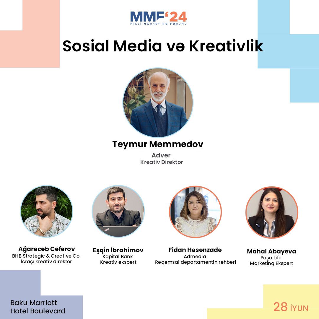 “Sosial Media və Kreativ” paneli “Adver.az” şirkətinin kreativ direktoru Teymur Məmmədovun moderatorluğu ilə baş tutacaq. “Admedia” şirkətinin rəqəmsal departamentin rəhbəri Fidan Həsənzadə, “BHB Strategic & Creative Co.” şirkətinin icraçı kreativ direktoru Ağarəcəb Cəfərov, “Kapital Bank”ın kreativ eksperti Eşqin İbrahimov, “Paşa Life” şirkətinin marketinq eksperti Mahal Abayeva sosial mediada ən son marketinq trendləri haqqında çıxış edəcəklər.