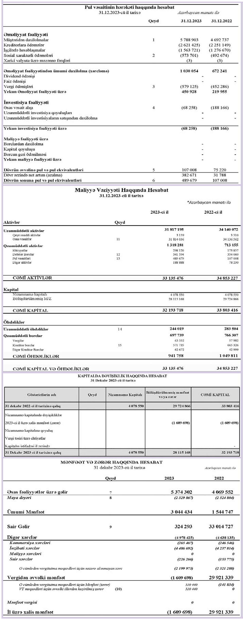"Azərbaycan Nəşriyyatı" MMC 2023-cü ili 1 milyon 610 min min manat xalis zərər ilə başa vurub. Şirkət 2022-ci ili 29 milyon 921 min manat xalis mənfəət ilə bağlamışdı.