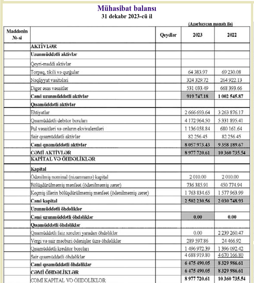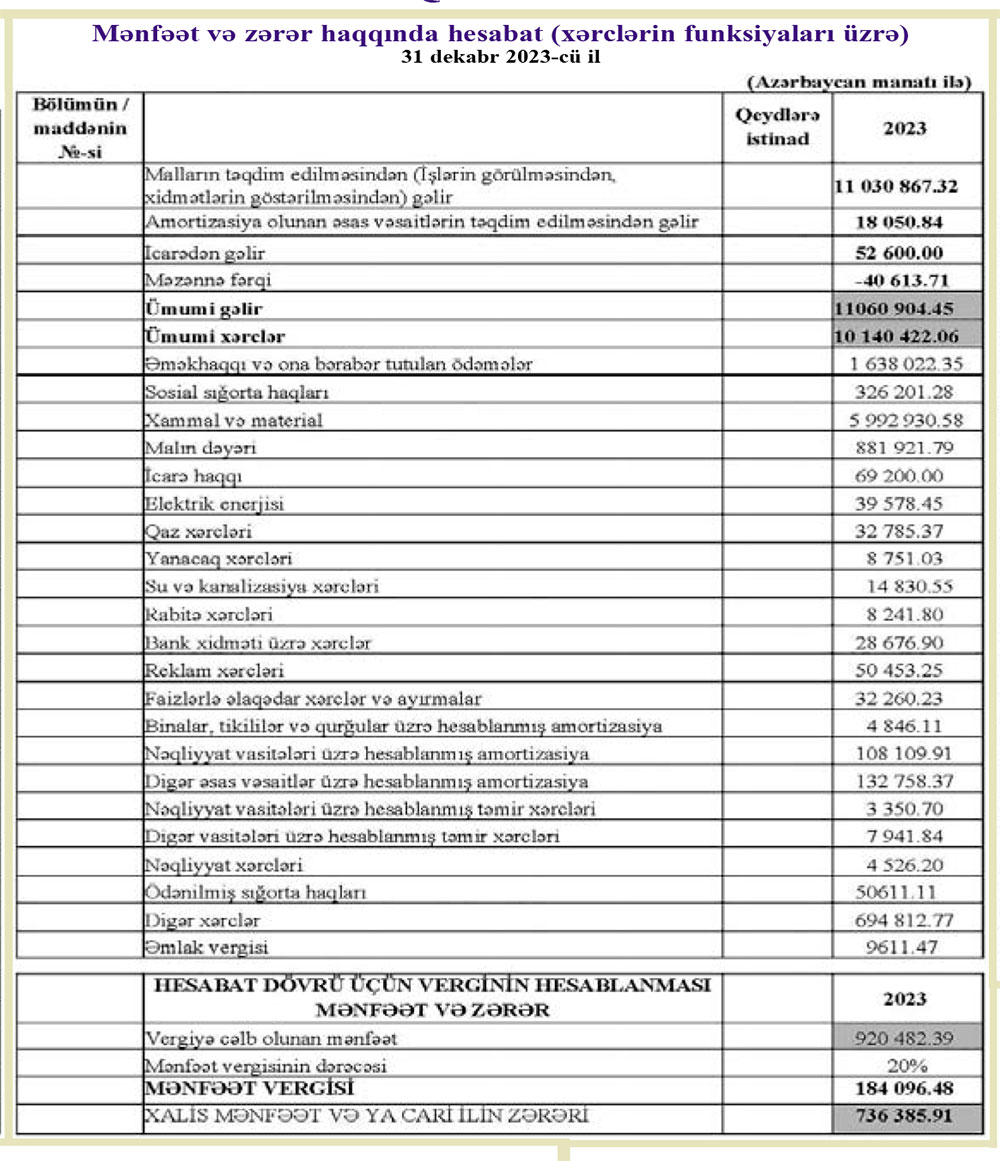 "Məmmədoğulları" şirkəti gəlirini və mənfəətini açıqladı
