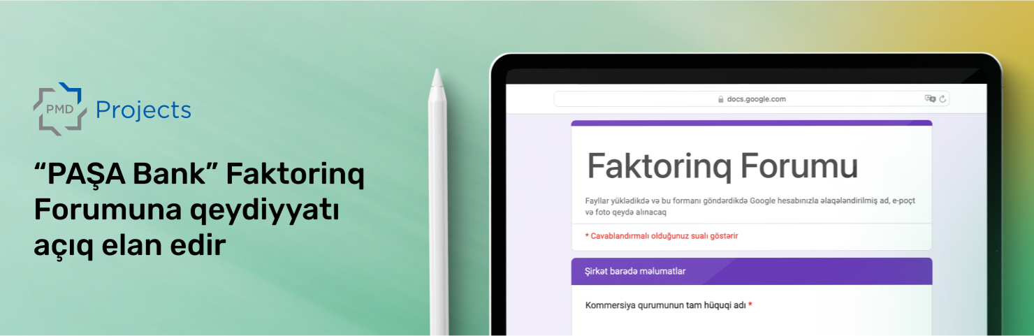 (®) Ölkənin aparıcı korporativ maliyyə institutu “PAŞA Bank” və tərəfdaşı “PMD Projects” MMC tərəfindən tikinti və təmir sektorunda fəaliyyət göstərən tədarukçülərə ödəniş və təchizat imkanlarının araşdırılması, alternativ hesab ödəniş modelləri ilə tanışlıq və faktorinq məhsulunun istifadəsi, həmçinin faydaları barədə məlumat vermək məqsədilə keçiriləcək Faktorinq Forumuna qeydiyyatı açıq elan edir.
