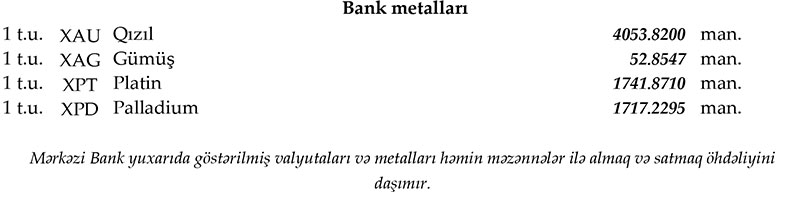 Rəsmi məzənnələr açıqlandı