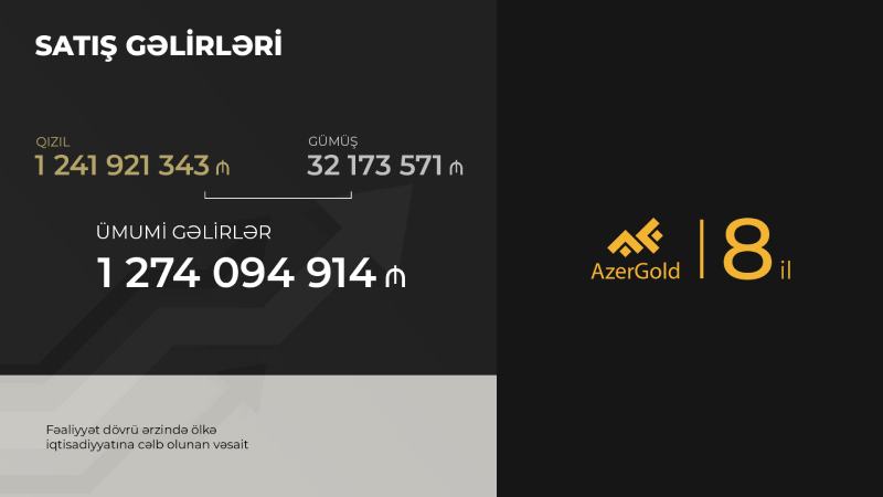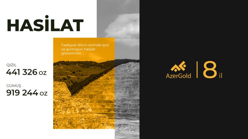 Səhmdar Cəmiyyət 441 min 326 unsiya qızıl, 919 milyon 244 unsiya gümüşün hasilatı, 437 min 730 unsiya qızıl, 889 min 709 unsiya qızıl və gümüşün yerli və beynəlxalq bazarlarda satışını həyata keçirib.