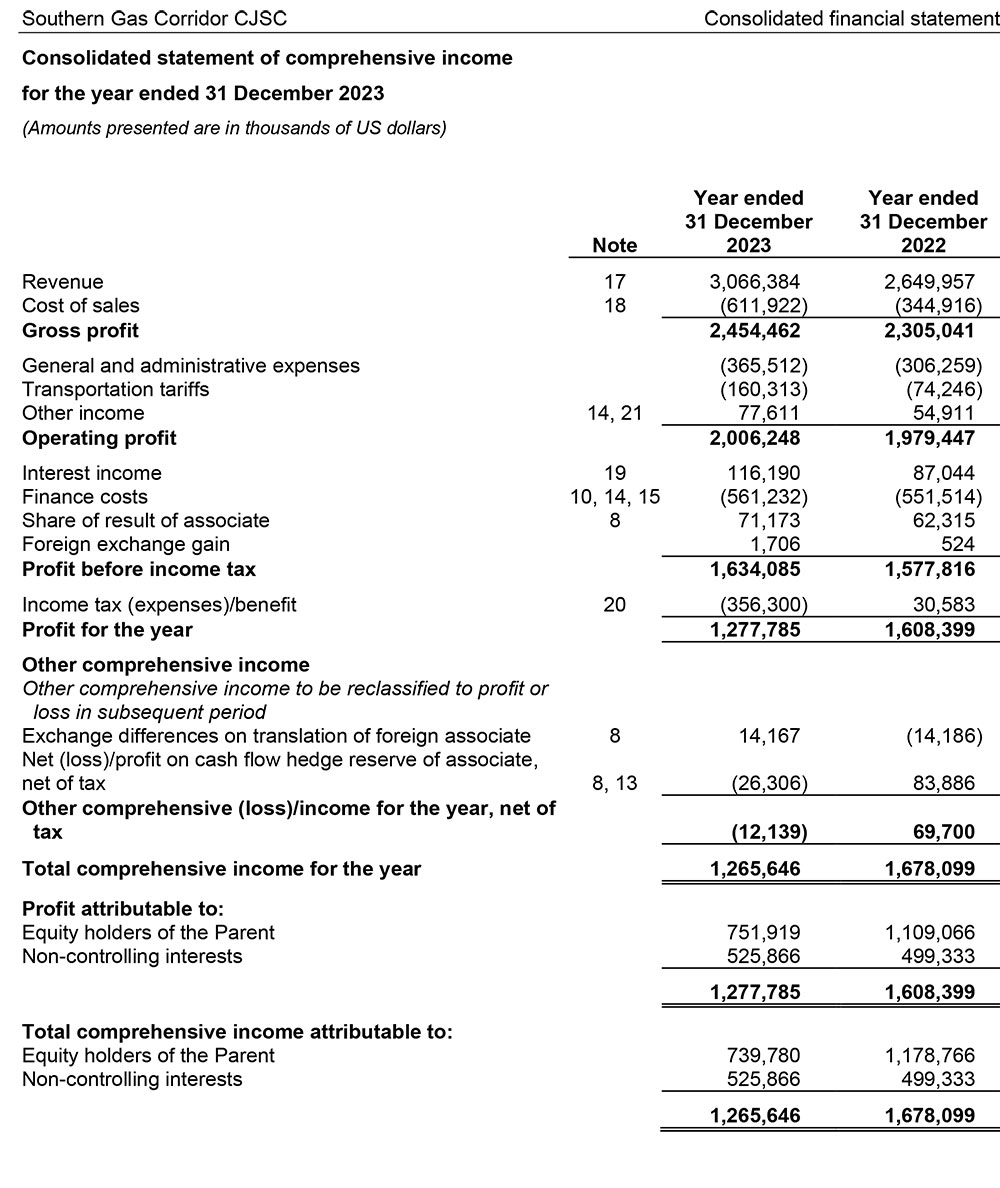 "Cənub Qaz Dəhlizi" QSC 2023-cü ili 1 milyard 277 milyon 785 min dollar xalis mənfəət ilə başa vurub. Şirkət 2022-ci ili 1 milyard 608 milyon 399 min dollar xalis mənfəət ilə bağlamışdı. Beləliklə, ötən il "Cənub Qaz Dəhlizi"nin xalis mənfəəti 330 milyon 614 min dollar və ya 20,5% azalıb