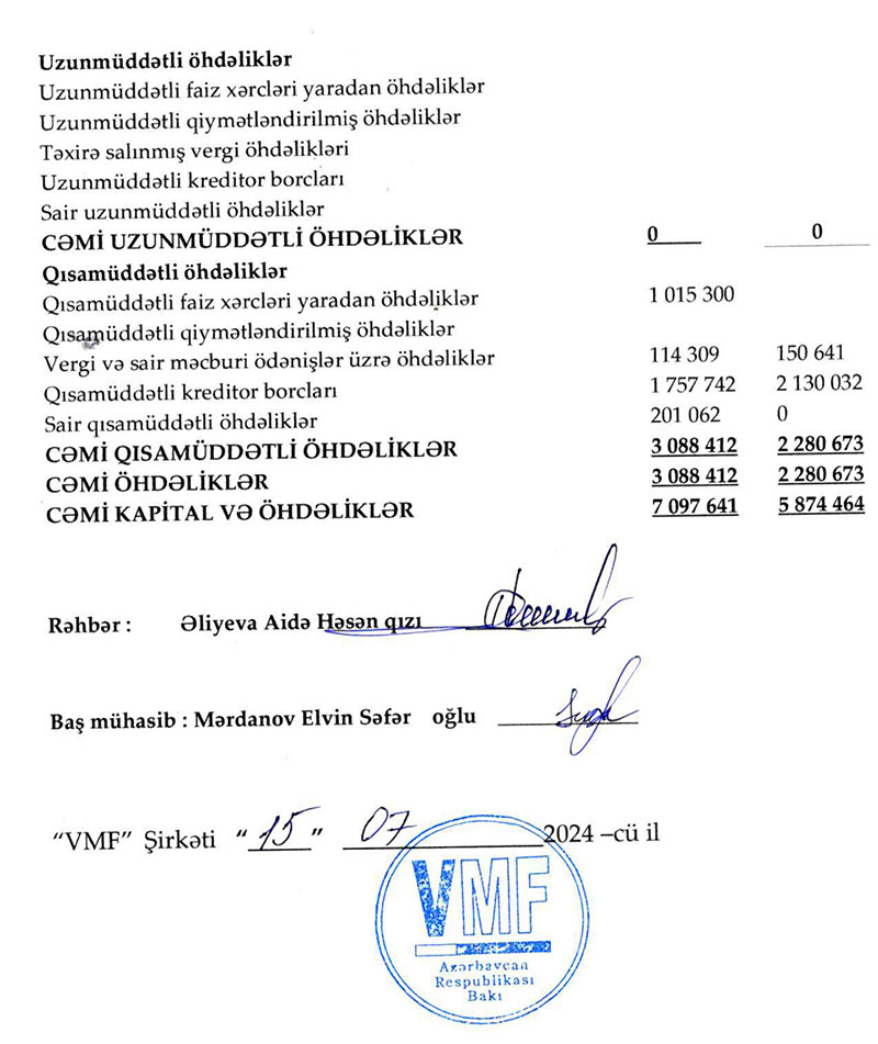 Qeyd edək ki, ötən il “VMF” şirkəti istiqraz buraxılışı yolu ilə 1 milyon manat borc alıb.