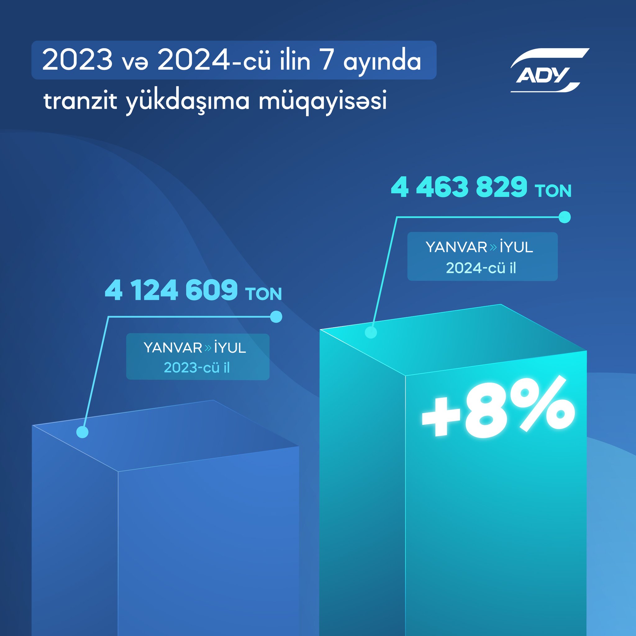Azərbaycan Dəmir Yolları (ADY) bu ilin yanvar-iyul aylarında 4,5 milyon tona yaxın tranzit yükü daşıyıb.