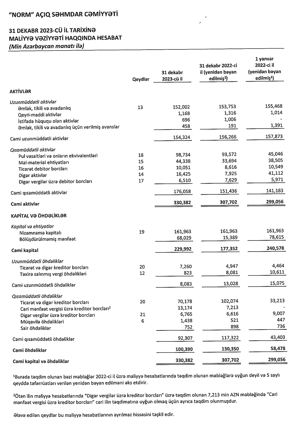 “Norm” ASC-nin 2023-cü il üzrə maliyyə göstəriciləri yüksəlib.“Norm” ASC 2023-ci ilin audit olunmuş maliyyə nəticələrinə dair hesabatı dərc edib.