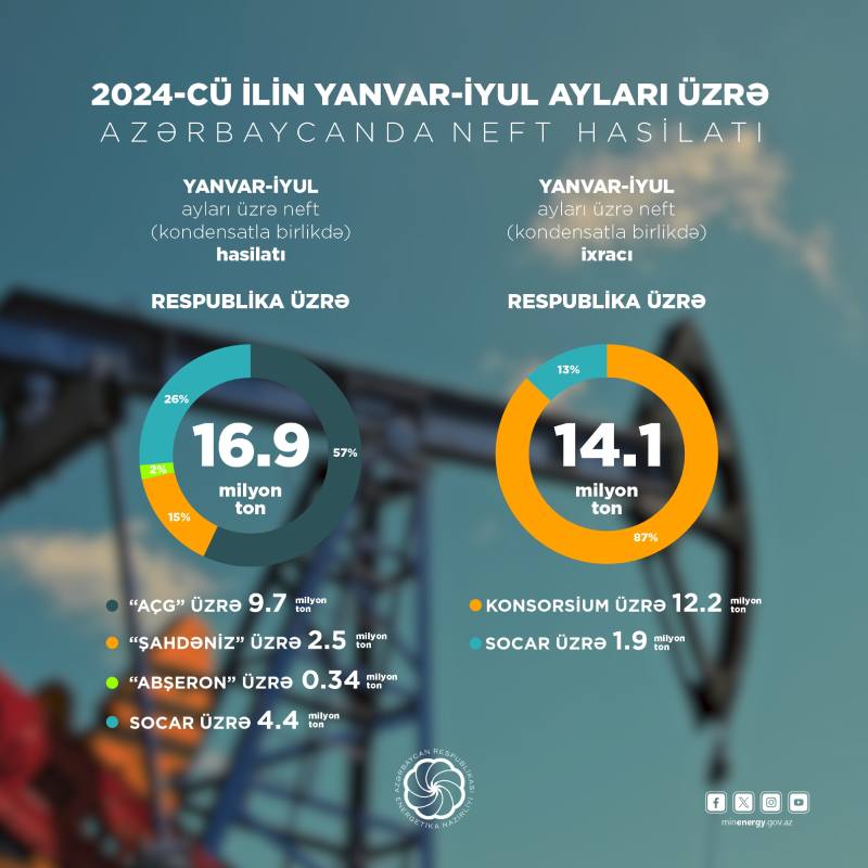 2024-cü ilin iyul ayında gündəlik neft (kondensatla birlikdə) hasilatı 80 589 ton olub. Bunun 65 681 tonunu xam neft, 14 908 tonunu kondensat təşkil edib.