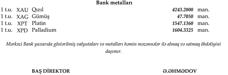 Rəsmi məzənnələr açıqlandı