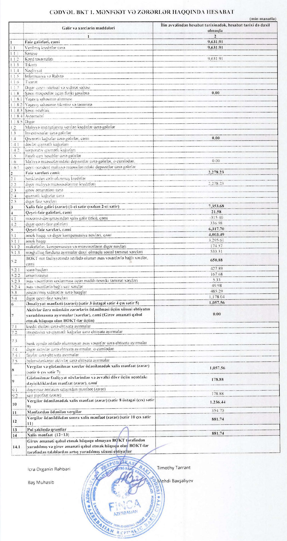 "Finca Azərbaycan" Məhdud Məsuliyyətli Qeyri-Bank Kredit Təşkilatı 2024-cü ilin 1-ci yarısını (yanvar-iyun) 882 min manat xalis mənfəət ilə başa vurub. Təşkilat 2023-cü ilin eyni dövrünü 841 min manat xalis mənfəət il bağlamışdı. Beləliklə, "Finca Azərbaycan"ın xalis mənfəəti 41 min manat və ya 4,9% artıb.