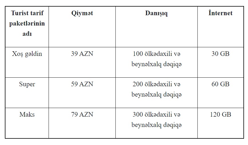Azərbaycan Respublikasına qısa müddətli səfər edən xarici ölkə vətəndaşlarının fakturasız (SimSim) xətt sistemində yalnız “Turist” tarif paketlərinə qoşulma imkanı təmin edilməklə digər tarif paketlərə qoşulmalara məhdudiyyət qoyulacaq. Azərbaycan Respublikasının ərazisində müvəqqəti yaşamaq üçün icazəsi olan əcnəbi vətəndaşlar “Turist” tarif paketi üzrə 30 gün istifadə müddəti bitdikdən sonra nömrədən istifadəni davam etdirmək üçün müvafiq sənədi təqdim etməklə “Turist” paketlərindən və ya digər tarif paketlərindən istifadəni davam edə biləcəklər.