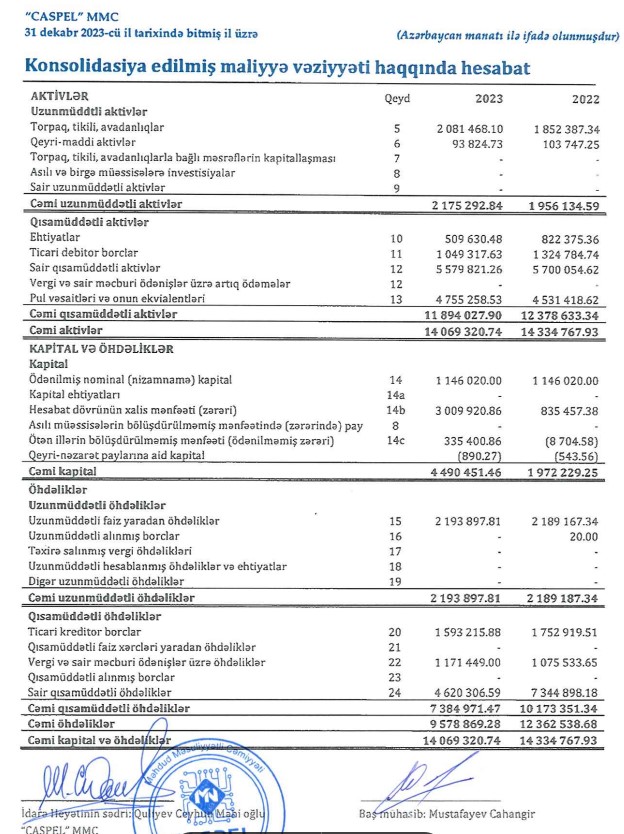 31 dekabr 2023-cü il tarixində "Caspel" MMC 14 milyon 69 min manat cəmi aktivlərə malik olub.