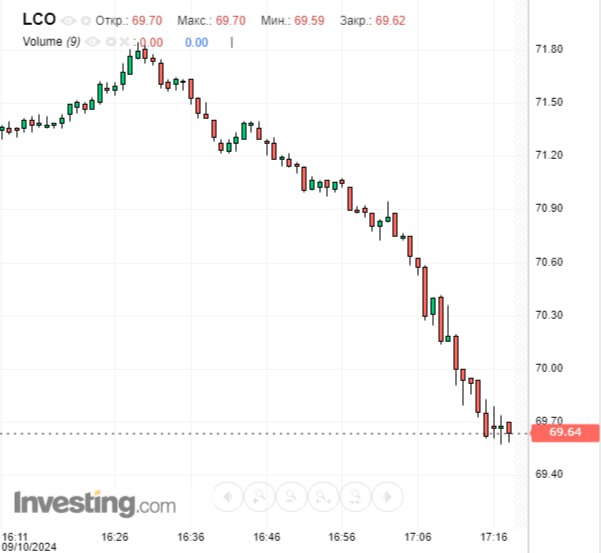 Marja.az xəbər verir ki, Londonun ICE birjasında Brent markalı neftin noyabr fyuçerslərinin qiyməti 3 faizə yaxın düşərək 69,64 dolları görüb.