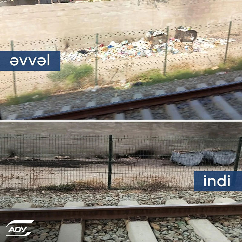 ADY Bakı Şəhər İcra Hakimiyyəti ilə əməkdaşlıq çərçivəsində dəmir yollarının təhkim zolaqlarının məişət tullantılarından təmizlənməsini həyata keçirib. Təmizlik işləri çərçivəsində Sabunçu rayonunun Zabrat və Kürdəxanı qəsəbələri ərazisində dəmir yolları və onlara yaxın ərazilər müxtəlif növ məişət tullantılarından təmizlənib və nəticədə, həm dəmir yolu infrastrukturunun, həm də ətraf ərazilərin ekoloji vəziyyəti yaxşılaşdırılıb.